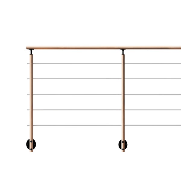 - Schlichter Materialmix: Pfosten und Handlauf aus lackierter Buche, Stäbe aus Edelstahl, Pfostenzubehör aus Aluminium RAL 9005.