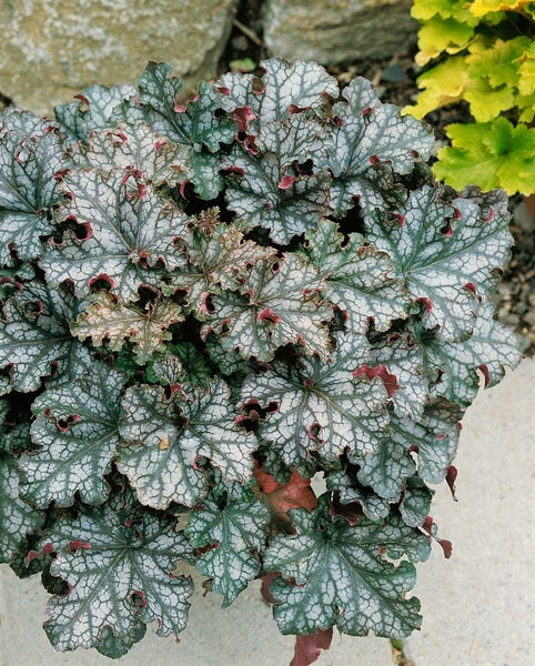 Heuchera micrantha 'Can Can', Purpurglöckchen, silbrig, ca. 11x11 cm Topf