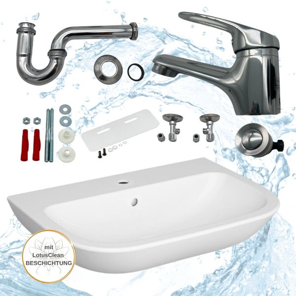 HGMBAD Waschtisch-Komplettset 60 cm mit Armatur, LotusClean Beschichtung und Schallschutz