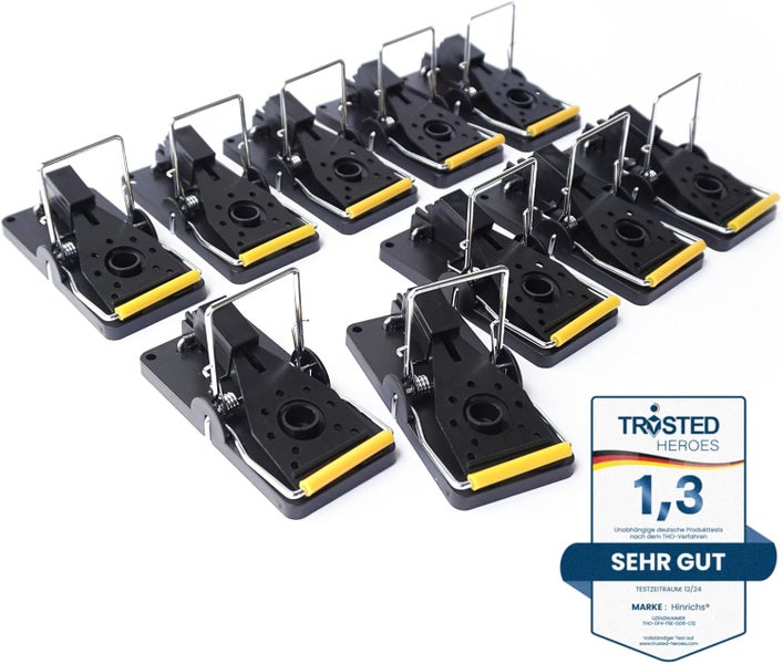 Hinrichs Mausefallen 10 Stück - Wiederverwendbare Mausefalle - Hygienische Schlagfalle Plastik