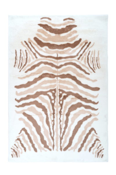 Hochflor Teppich Ophelios Elfenbein / Taupe / Weiß Animal 120 x 160 cm
