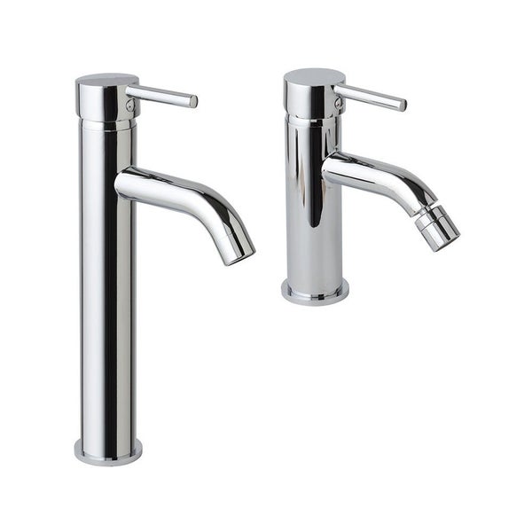 Die richtige Armatur verleiht dem Badezimmer Charakter und definiert seinen Stil. Dieses Set umfasst den hohen Waschtischmischer, ideal für Aufsatzbecken, sowie den Bidetmischer. Beide Armaturen überzeugen durch modernes Design, haben einen Messingkörper und einen praktischen Hebel aus Zink. Der Waschtischmischer misst 28,7 cm Höhe, 5,2 cm Durchmesser, der Bidetmischer 17,2 cm Höhe, 5,2 cm Durchmesser. Beide Armaturen verfügen über Click Clack Abflussgarnitur aus ABS, Strahlregler, 35 mm Keramikkartusche und 35 cm flexiblen Schlauch. Neben der klassischen Chromausführung sind viele Produkte auch in elegantem mattschwarz erhältlich, für ein modernes, trendiges Badezimmer.