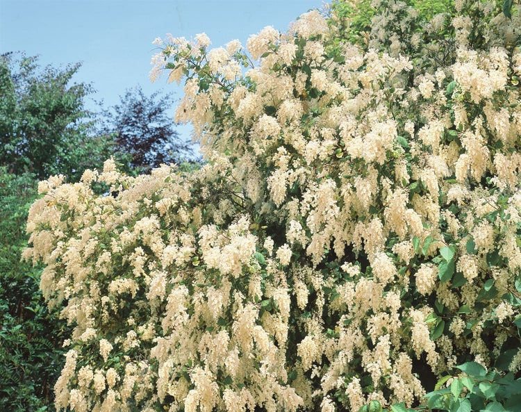 Holodiscus discolor, die Scheinspiere, auch als Fächerstrauch bekannt, ist ein eleganter Blütenstrauch mit natürlichem Charme, der jeden Garten bereichert. Ab Frühsommer zeigen sich üppige, cremeweiße, duftende Blütenrispen, die in lockeren Kaskaden über bogig überhängenden Trieben schweben und dem Zierstrauch eine federleichte, romantische Anmutung verleihen. Das frischgrüne, gelappte Laub bildet einen attraktiven Kontrast zu den Blüten und erhält im Herbst oft eine warmgelbe bis bronzene Färbung. Der mehrtriebige Gartenstrauch wächst locker aufrecht und bildet mit der Zeit eine malerische, leicht transparente Silhouette, die sowohl im Naturgarten als auch in klassischen Pflanzungen überzeugt. Als Solitär setzt die Scheinspiere wirkungsvolle Akzente, passt aber ebenso gut in die gemischte Strauchrabatte, an den lichten Gehölzrand oder in eine lockere Blütenhecke; in größeren Beeten und Vorgärten harmoniert sie mit Stauden und Gräsern, und in einem ausreichend großen Kübel lässt sie sich auf Terrasse und Sitzplatz attraktiv in Szene setzen. Bevorzugt werden sonnige bis halbschattige Standorte mit gut durchlässigem, mäßig frischem Boden; leichte, humose Substrate sind ideal, Staunässe sollte vermieden werden. Nach dem Verblühen empfiehlt sich ein behutsamer Auslichtungsschnitt, bei dem älteres Holz entfernt wird, um die Bildung junger, blühfreudiger Triebe anzuregen. Robust und pflegeleicht, zeigt sich Holodiscus discolor auch in wärmeren, trockenen Phasen nach der Etablierung erstaunlich standfest und bleibt über viele Jahre ein verlässlicher, vielseitig einsetzbarer Blüten- und Gartenstrauch.