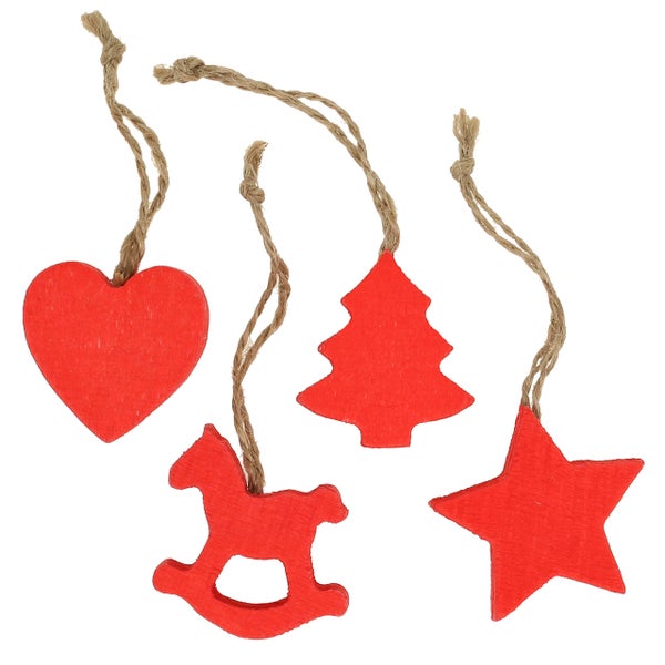 Holz-Dekoanhänger Weihnachten Herz Tanne Stern Schaukelpferd, 34 Stück