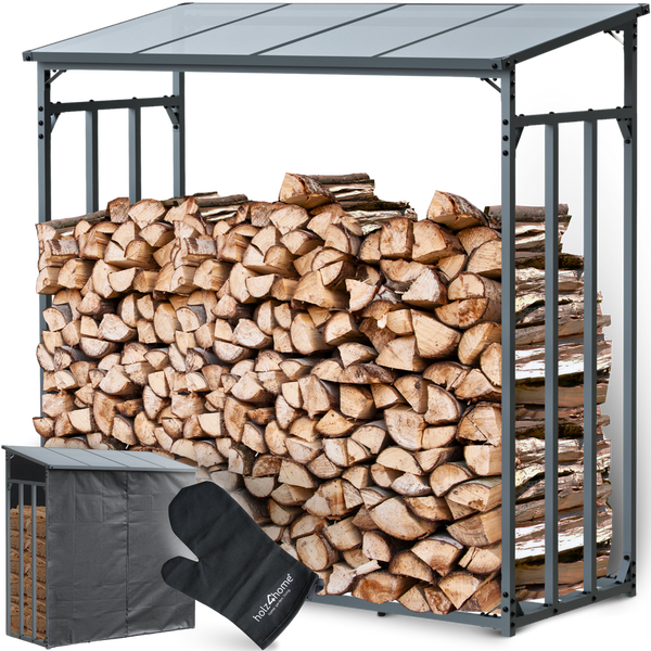 holz4home Kaminholzunterstand XL Metall für Außen 2,3m³ 3,5SRM Anthrazit inkl. Ofenhandschuh