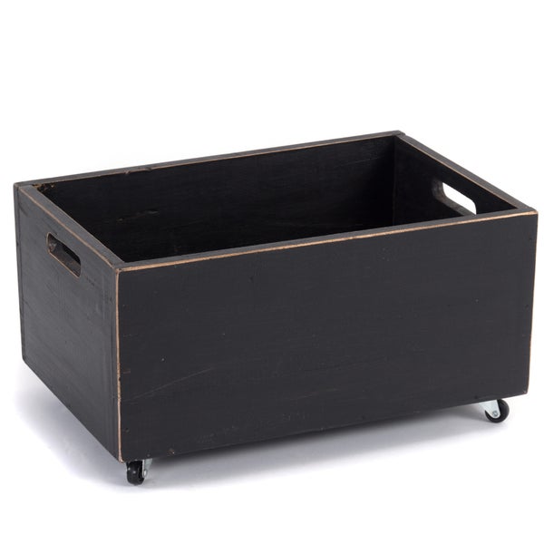 Holzkiste BOX Recyclingholz massiv, mit Rollen 09 voodoo - schwarz