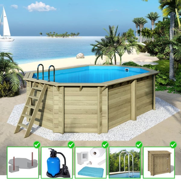 Holzpool Nemo 5,79x3,49 - H.1,45 m mit einzubetonierendem Profil