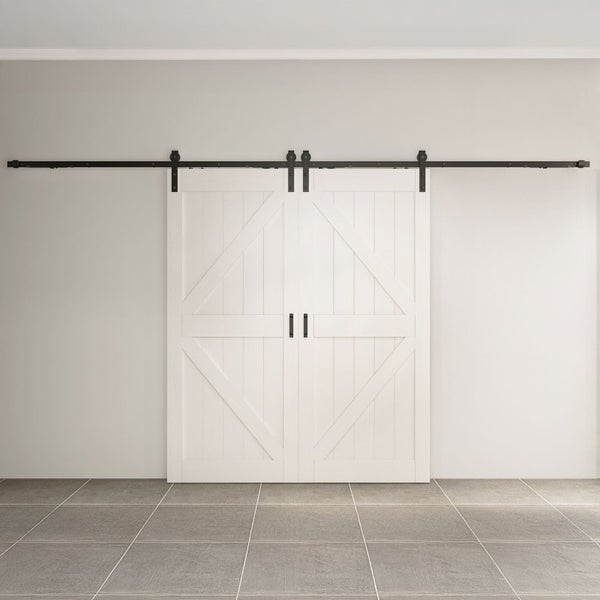 Holzschiebetür Inova Komplettset Scheunentor weiß Doppelflügelig Beschlag in schwarz - 1800x2150mm