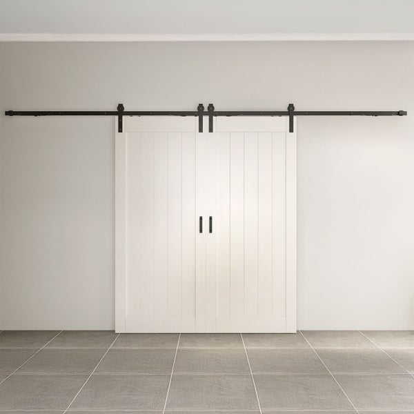 Holzschiebetür Inova Komplettset Scheunentor weiß Doppelflügelig Beschlag in schwarz - 1800x2150mm