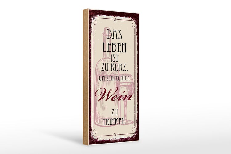 - TitelHolzschild Spruch Leben ist kurz für schlechten Wein 10x27cm [ORIGINAL HOLZSCHILD von FEMER]