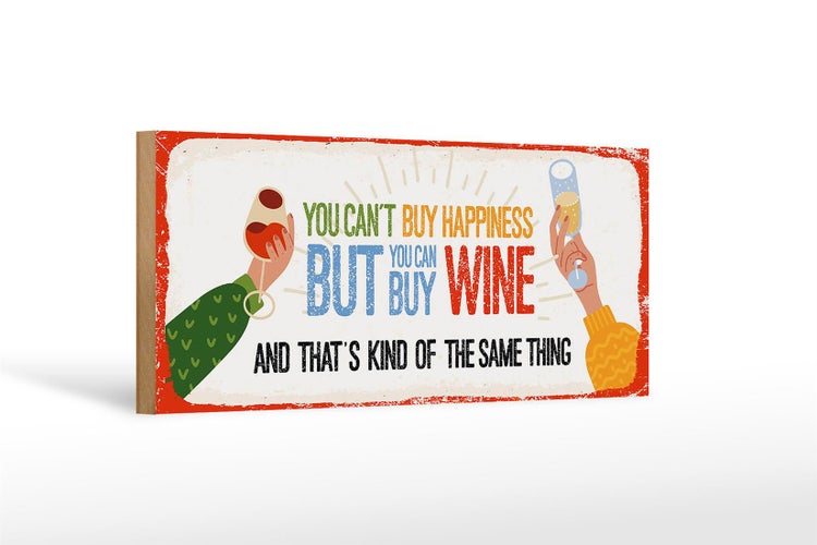 - TitelHolzschild Spruch Wein Can´t buy happines but Wine 27x10cm [ORIGINAL HOLZSCHILD von FEMER]