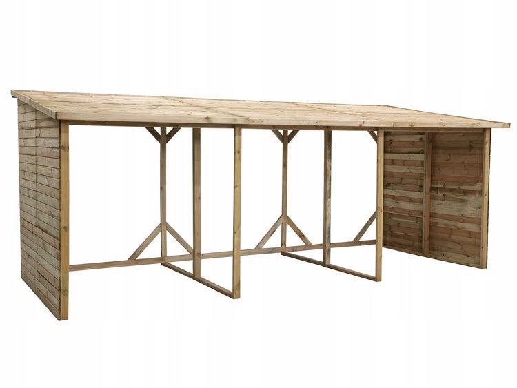 Das angebotene Produkt DREW4 hilft dabei, einen ordentlichen Lagerplatz für Holz zu schaffen, während das Dach es vor Schnee und Regen schützt. Gleichzeitig sorgt die offene Konstruktion für ausreichende Belüftung, die das Holz auf natürliche Weise trocknet und Sonnenlicht sowie Wärme durchlässt.