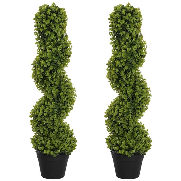 HOMCOM 2er-Set Künstlicher Spiral-Buchsbaum, 90 cm Zimmerpflanze, Kunstpflanze mit UV Schutz, große Dekorative Pflanzen im Topf für Zuhause, Büro, Flur, Garten, Grün
