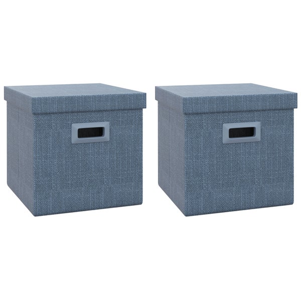 HOMCOM Aufbewahrungsbox 2er-Set Stapelbare Aufbewahrungswürfel, Faltbare Aufbewahrungskiste für Wohnzimmer, Schlafzimmer, 30 x 30 x 29 cm, Blau