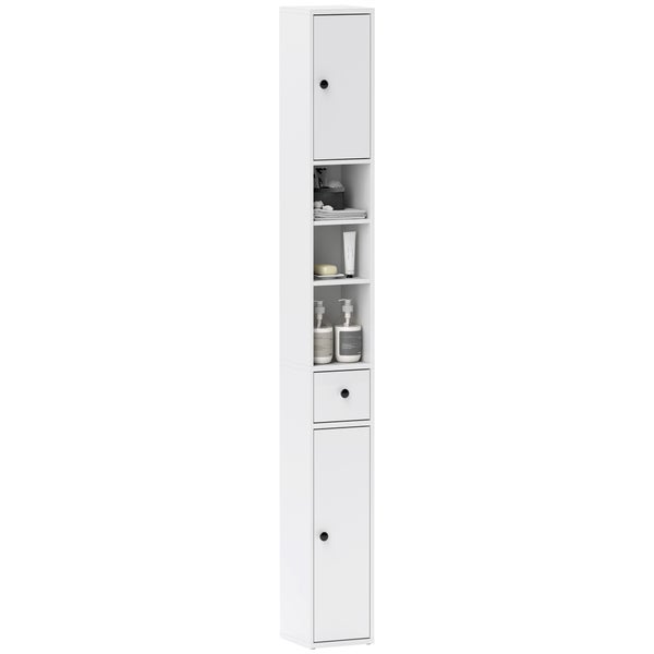 HOMCOM Badezimmerschrank schmal, Hochschrank Toilettenschrank mit Schublade, 3 offenen Fächern, verstellbarem Regal, Badschrank für kleine Räume, Badezimmer, Wohnzimmer 20 x 20 x 178 cm Weiß