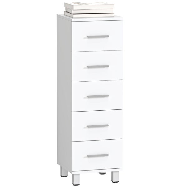 HOMCOM Badezimmerschrank Schmaler Badschrank mit 5 Schubladen Toilettenschrank für Badezimmer und Wohnzimmer 30x30x95 cm Weiß