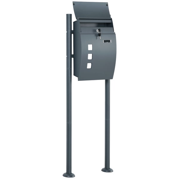 HOMCOM Briefkasten mit Ständer, Postkasten mit Zeitungsfach Wandbriefkasten mit 2 Schlüssel, Sichtfenster, aus Verzinktem Stahl, 44 x 15 x 114 cm, Anthrazit