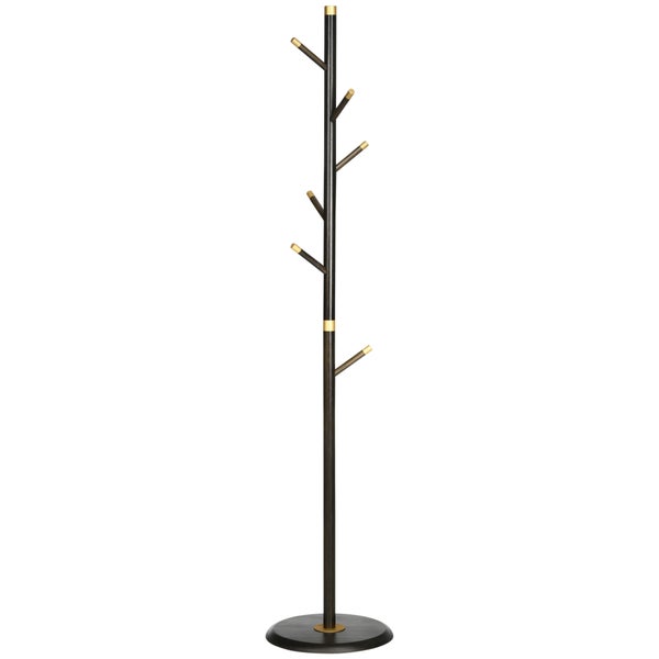 HOMCOM Garderobenständer, Garderobe mit 6 Haken, Kleiderständer, Standgarderob für Kleidung, Hüte, Flur, Eingang, Metall, Walnuss, 36 x 36 x 180 cm