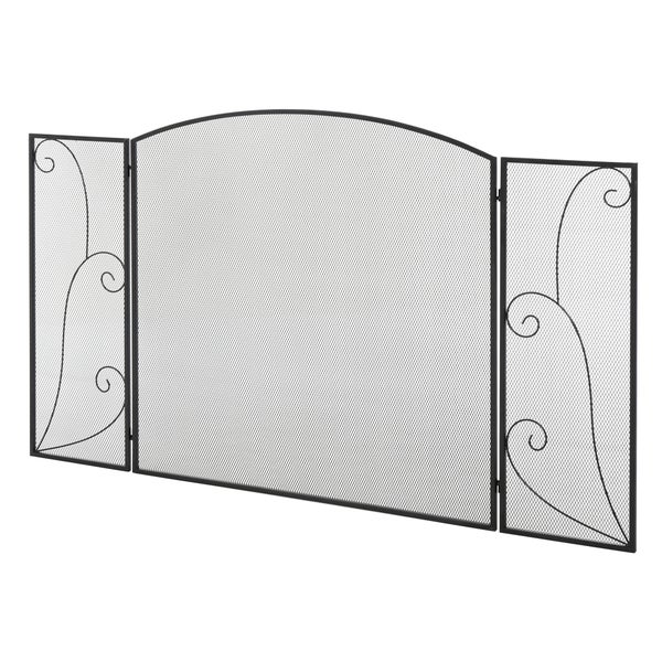 HOMCOM Kamingitter, Kaminschutzgitter mit 3 Paneelen, Klappbares Funkenschutzgitter, Ofenschutzgitter für Wohnzimmer, Metall, Schwarz 132,5 x 76,5cm