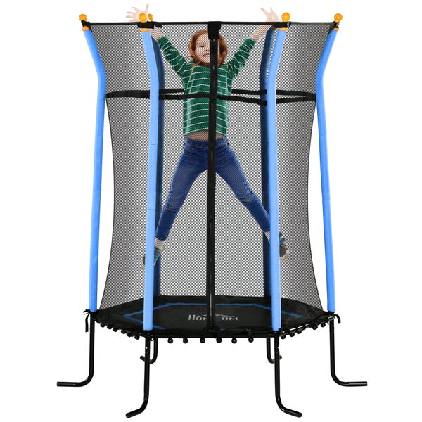 HOMCOM Kinder Trampolin Ø163,5 cm, Indoor Trampolin mit Sicherheitsnetz Randabdeckung Gummiseil, Kindertrampolin bis 50 kg, für Kinder 3-10 Jahre Blau