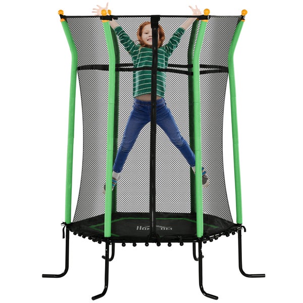HOMCOM Kinder Trampolin Ø163,5 cm, Indoor Trampolin mit Sicherheitsnetz Randabdeckung Gummiseil, Kindertrampolin bis 50 kg, für Kinder 3-10 Jahre Grün