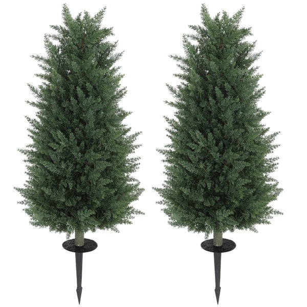 HOMCOM Künstliche Zypresse 2er-Set mit Erdspieß 100 cm Plastik Kunstpflanze, künstliche Pflanzen, Kunstbaum wie echt Deko für Büro Wohnzimmer Schlafzimmer Garten