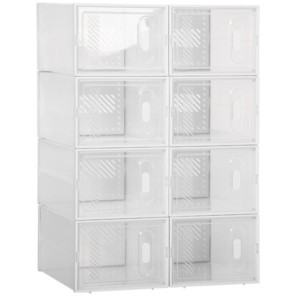 Das modulare Regalsystem von HOMCOM ist jedem Schuhregal einen Schritt voraus! Bestehend aus 8 Würfelmodulen, lässt er sich nach Belieben zusammensetzen und optimal Ihrem Interieur anpassen. Das robuste Kunststoffgehäuse ist ausgesprochen langlebig und zudem mit praktischen Belüftungsöffnungen ausgestattet. Dank des transparenten Materials behalten Sie stets den Überblick über Ihre Kollektion. Natürlich können Sie den Schrank auch für Spielzeug, Bücher, Wäsche u. v. m. nutzen.