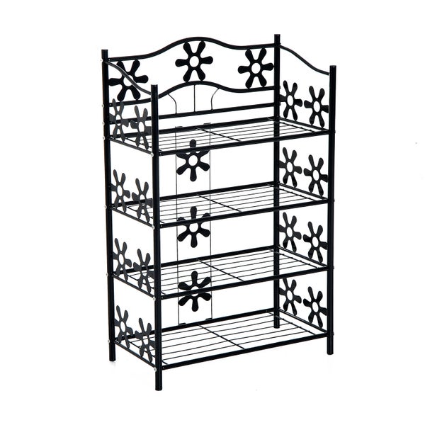 HOMCOM Pflanzenregal Schuhregal Blumentreppe Pflanzentreppe Standregal Ständer 4 Etagen aus Metall, 59,5 x 30 x 92 cm, Schwarz