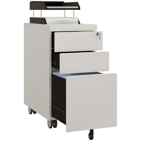 Ist Ihr Büro unordentlich und Sie finden nie, was Sie brauchen? Der HOMCOM Rollcontainer mit drei Schubladen bietet die perfekte Lösung. Alles, was Sie für einen produktiven Arbeitstag benötigen, ist stets griffbereit und wohlorganisiert. Verbringen Sie weniger Zeit mit dem Suchen in Papierstapeln und mehr Zeit mit effektivem Arbeiten. Mit diesem mobilen Schreibtisch Container von HOMCOM bleiben Sie immer vorbereitet.