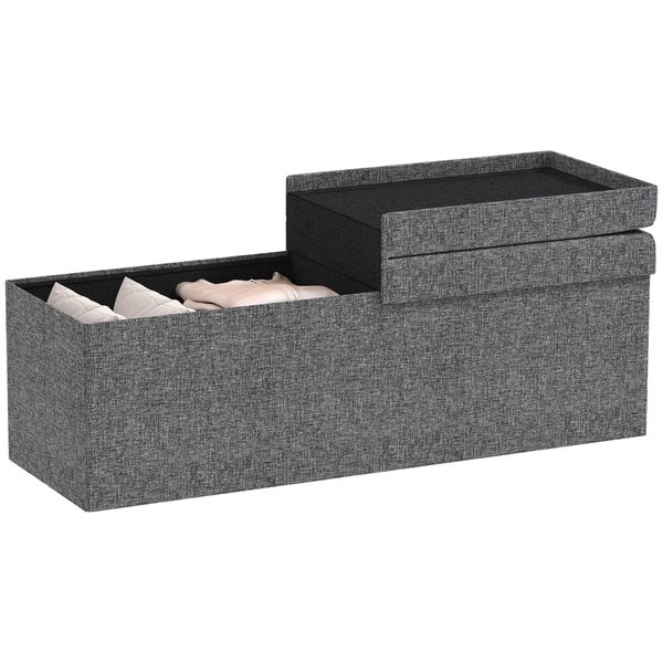 HOMCOM Sitzbank mit Stauraum, faltbar Polsterbank mit separaten Behältern, Bettbank mit Leinenoptik, Sitztruhe für Flur Schlafzimmer Wohnzimmer, 110 x 38 x 38 cm Dunkelgrau