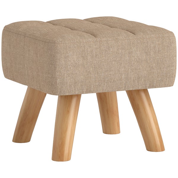 HOMCOM Sitzhocker Hocker quadratisch mit weichem Sitzkissen Holzbeinen Fußhocker mit Leinenoptik Polsterhocker Ottoman für Schlafzimmer, Wohnzimmer, Braun