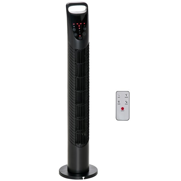 HOMCOM Turmventilator leise, Standventilator mit 3 Belüftungsstufen, 7,5H Timer, 40W Ventilator mit Fernbedienung, 70° Oszillation, für Schlafzimmer, Schwarz