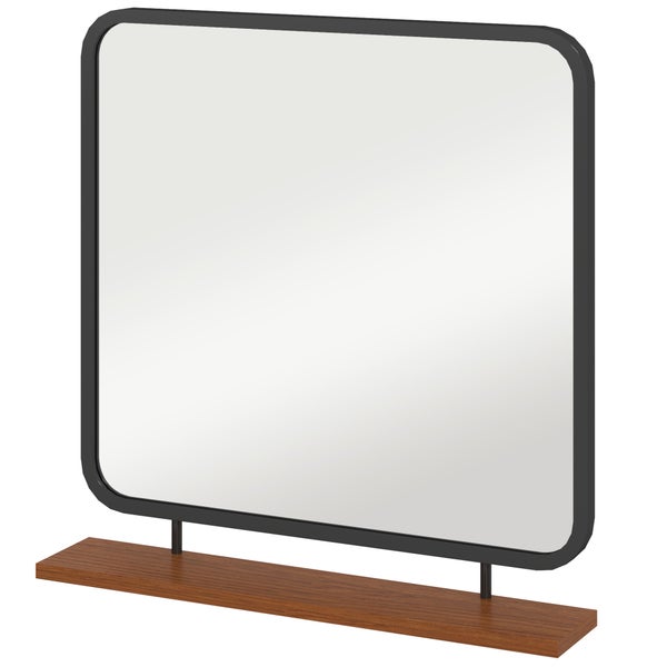 HOMCOM Wandspiegel 55 x 55,5 cm Flurpiegel mit Ablage aus Holz, rechteckiger Spiegel, Dekospiegel für Schlafzimmer, Badezimmer, Schwarz