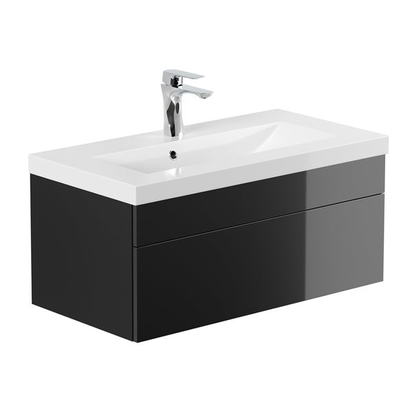 Home Deluxe - Badmöbel-Set - WANGEROOGE BIG Schwarz - Small - inkl. Waschbecken und komplettem Zubehör - Breite Waschbecken: ca. 80 cm I Badezimmermöbel Waschtisch Badmöbelset