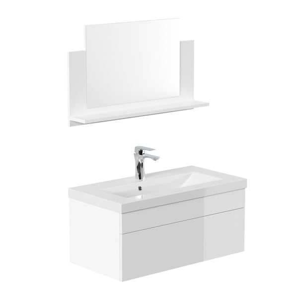 Unser Set, bestehend aus Waschbecken mit Waschbeckenunterschrank, besticht durch ein modernes Design und verleiht deinem Badezimmer eine individuelle Note. Durch die hochglänzenden Fronten strahlen die Badmöbel eine außergewöhnliche Eleganz aus. Die Seiten sind matt melaminweiß. Ein versiegelnder Schutzlack gewährleistet wasserabweisende und leicht zu pflegende Oberflächen. Damit bekommen alle deine Utensilien einen festen Platz in deinem Badezimmer. Unser Badmöbel-Set Wangerooge bietet dir ausreichend Stauraum für eine perfekte Organisation. Zugunsten eines individuellen Ordnungssystems findest du im Waschbeckenunterschrank eine Klappe hinter der dir noch mehr Stauraum zur Verfügung steht.