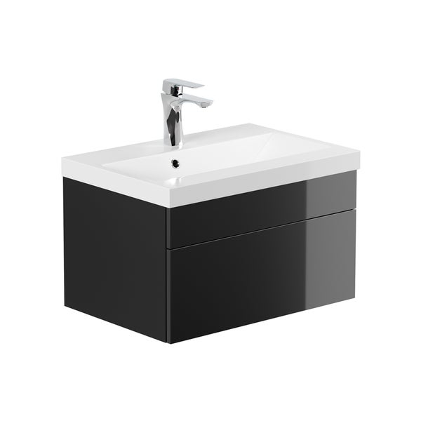Home Deluxe - Badmöbel-Set - WANGEROOGE schwarz - Small - inkl. Waschbecken und komplettem Zubehör - Breite Waschbecken: ca. 60 cm I Badezimmermöbel Waschtisch Badmöbelset