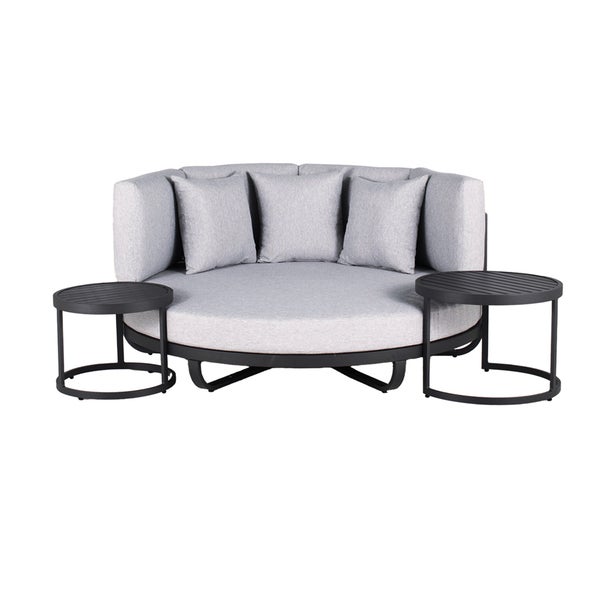 Das stabile Gestell sorgt nicht nur für eine sichere Unterstützung, sondern verleiht der Liege auch eine zeitlose Ästhetik, die deinen Außenbereich aufwertet. Unser Design vereint Funktionalität mit Eleganz und bietet dir einen Ort der Ruhe und Entspannung im Freien. Hergestellt aus witterungsbeständigem Material, trotzt diese Gartenliege den Elementen und behält dabei stets ihre Schönheit bei. Der pflegeleichte und schimmelresistente Stoff sorgt dafür, dass deine Liege stets frisch und einladend aussieht, während die inkludierten 3 Kissen zusätzlichen Komfort bieten. Wähle je nach Bedarf zwischen verschiedenen Optionen, die mit praktischen Beistelltischen geliefert werden können.