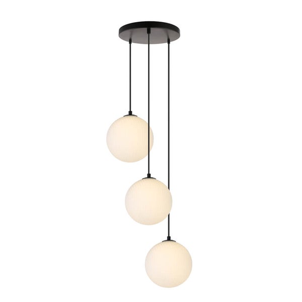 - Hängeleuchte mit drei kugelförmigen Lampenschirmen