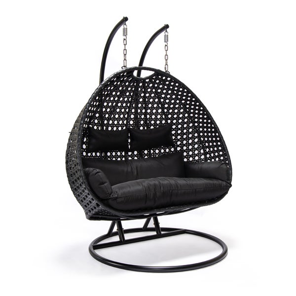 Home Deluxe - Hängesessel TWIN - Schwarz, Höhe 195 cm - inkl. Gestell, Sitz- und Rückenkissen I Polyrattan Hängestuhl Gartenschaukel Hängekorb