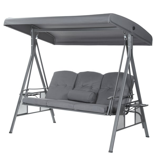 Home Deluxe - Hollywoodschaukel DESCANSO Grau - 3-Sitzer, B/H/L 115cm x 195cm x 198cm, inkl. Getränkehalter, Sitz- und Rückenkissen I Gartenliege Gartenlounge Schaukelliege