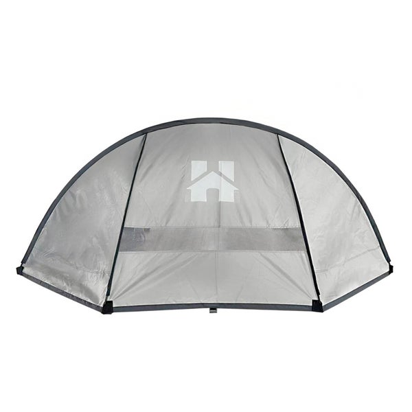 Das Sonnendach ist in einem eleganten Grau gehalten. Hergestellt aus strapazierfähigem, sicherem 300D-Oxford-Polyester bietet der Stoff des Daches exzellente Haltbarkeit und UV-Schutz, sodass Sie sich vollkommen fühlen können. Die Stangen des Sonnendachs bestehen aus leichtem, aber robustem Fiberglas, was es äußerst stabil macht und gleichzeitig die Montage zu einem mühelosen Erlebnis macht. Egal ob im Garten, am Strand oder beim Camping – das Sonnendach lässt sich problemlos aufbauen und bietet Ihnen sofort den gewünschten Schutz. Ein besonderes Highlight ist der Belüftungsschlitz, der für eine optimale Luftzirkulation sorgt. Dadurch kannst du die angenehme Brise genießen, ohne dass sich die Hitze unter dem Dach staut. Die wasserabweisende Beschichtung garantiert außerdem, dass du auch bei einem unerwarteten Regenschauer trocken bleibst. Damit du das Sonnendach bequem transportieren und aufbewahren kannst, wird es inklusive einer praktischen Aufbewahrungstasche geliefert.