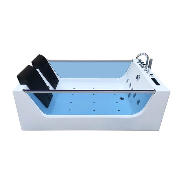 Dank seiner beeindruckenden Größe und den beiden optisch ansprechenden Kopfstützen kann dieser Whirlpool problemlos von zwei Personen genutzt werden. Die vier verstellbaren großen Whirlpooldüsen, sechs Bodyjets und zwölf Airjets sorgen für das perfekte Entspannungserlebnis. Du kannst den Whirlpool natürlich auch ganz normal als Badewanne verwenden. Das moderne Design in Kombination mit guter Funktionalität macht unseren Topseller komplett. Lehne dich zurück und genieße eine beruhigende Zeit im Whirlpool, während die innovative Farblichttherapie das Wasser in sanften, beruhigenden Farben leuchten lässt. Nicht nur die Eigenschaften sind herausragend, sondern auch die Qualität ist für den angegebenen Preis mehr als fair. Besonders hervorzuheben sind das verstärkte, strahlend weiße ABS-Sanitäracryl, die hochwertigen Armaturen, die Aluminium-Rahmenkonstruktion und das computergesteuerte Touch-Bedienelement. Die höhenverstellbaren Füße der Wanne passen sich fast jedem Untergrund an und ermöglichen eine einfache Montage an jedem Ort. Falls dir diese Größe nicht zusagt, bieten wir auch den Whirlpool ATLANTIC M oder ATLANTIC L an, die dir eventuell besser passen könnten.