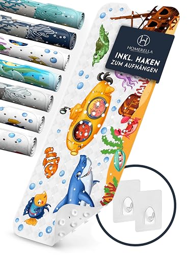 Homerella® Badewannenmatte rutschfest Kinder - 100% Inkl. 2 Haken zum Aufhängen 100x40cm - Antirutschmatte Badewanne Baby hautsensitiv & schimmelresistent - Badematte rutschfest & waschbar
