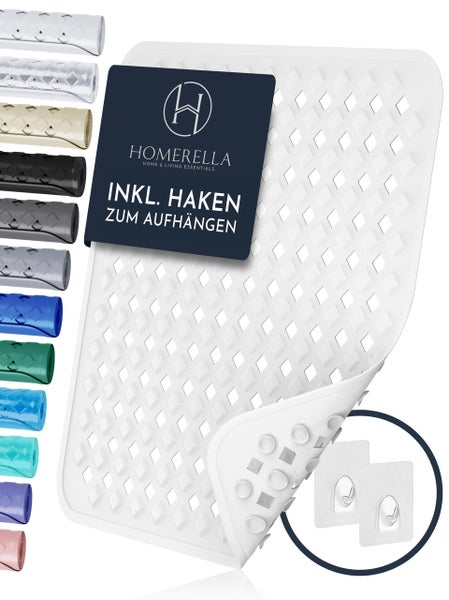 Homerella® Duschmatte rutschfest - 100% - Inkl. 2 Haken zum Aufhängen 53x53cm - Antirutschmatte Dusche hautsensitiv & schimmelresistent - Duscheinlage maschinenwaschbar