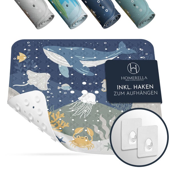Homerella® Duschmatte rutschfest Kinder - 100% Inkl. 2 Haken zum Aufhängen 53x53cm - Antirutschmatte Dusche Baby hautintensiv & schimmelresistent - Duscheinlage maschinenwaschbar