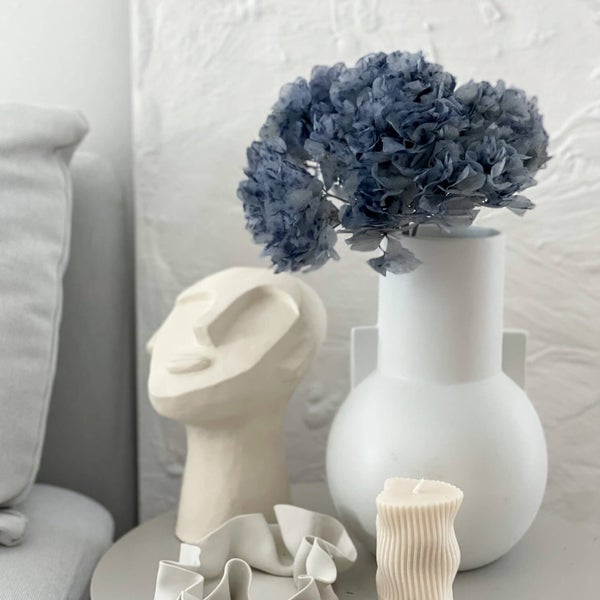 Getrocknete Hortensien eignen sich als perfekte Ergänzung in Trockenblumenkränzen. Auch für Sträuße, die in kleinen bis mittleren Vasen stehen, sehen sie traumhaft bei dir in deinem Zuhause aus. Mit einem Bund bekommst du einen klassischen und gemütlichen Look. Die konservierte Hortensie kann über mehrere Jahre hinweg ihre natürliche Optik erhalten.