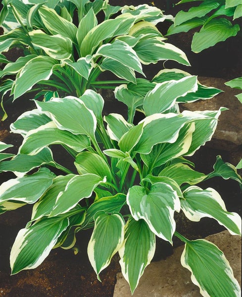 Hosta x fortunei ‘Moerheim’, die elegante Funkie (auch als Herzblattlilie bekannt), ist eine charakterstarke Blattschmuckstaude für halbschattige bis schattige Bereiche, die mit ihrem harmonischen Horstwuchs und üppigem Laub jeden Garten aufwertet. Die breit eiförmigen, leicht gewellten Blätter erscheinen in einem satten Mittelgrün und zeigen einen dekorativen, zunächst gelblichen, später cremefarbenen Rand, der für edle Kontraste sorgt. Im Sommer, meist von Juni bis August, erheben sich schlanke Blütenstände mit zarten, lavendel- bis hellvioletten, glockenförmigen Blüten über das Laub und verleihen dem Blattschmuck zusätzliche Leichtigkeit. Der kompakte, dennoch kraftvolle Wuchs macht ‘Moerheim’ zur vielseitigen Gartenstaude, die im Schattenbeet, am Gehölzrand und im Japangarten ebenso überzeugt wie als strukturstarke Beetstaude im Vorgarten oder als langlebige Kübelpflanze auf Terrasse und Balkon. In Gruppenpflanzung entfaltet sie eine ruhige, flächige Wirkung, während sie als Solitär im Halbschatten Akzente setzt und mit Farnen, Astilben, Heuchera und Schatten-Gräsern perfekt harmoniert. Bevorzugt wird ein humoser, gleichmäßig frischer, nährstoffreicher und durchlässiger Boden; Staunässe wird vermieden, eine Mulchschicht hält die Feuchtigkeit konstant. Ein halbschattiger bis schattiger Standort fördert die intensive Blattzeichnung und verhindert Sonnenbrand. Die pflegeleichte, winterharte Schattenstaude benötigt kaum mehr als regelmäßiges Gießen in Trockenphasen, gelegentliche Teilung zur Verjüngung und einen Rückschnitt des eingezogenen Laubs im Spätwinter – so bleibt Hosta ‘Moerheim’ dauerhaft vital, formschön und ein Highlight im Ziergarten.