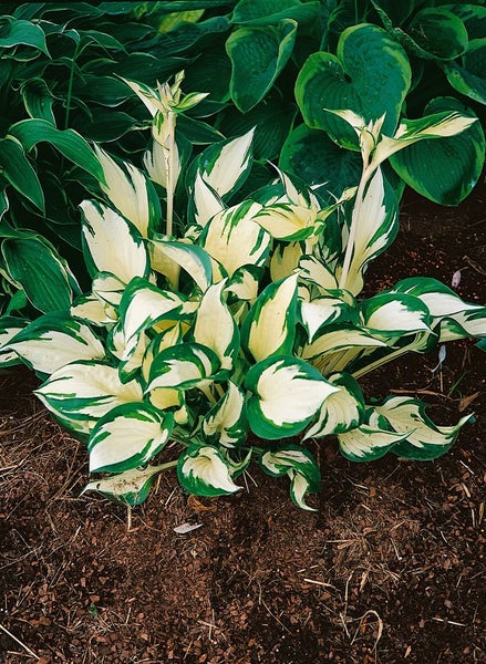 Als vielseitige Gartenstaude eignet sich Hosta ‘June’ -R- ideal für das Schattenbeet, den Vorgarten, Gehölzrand und als Strukturpflanze im Staudenbeet. In Gruppenpflanzung entfaltet sie eine ruhige, harmonische Wirkung, als Solitär setzt sie gezielte Highlights, und als Kübelpflanze veredelt sie schattige Terrassen oder den Eingangsbereich. Perfekte Partner sind Farne, Astilben und Heuchera, die die Blattfarben stimmungsvoll unterstreichen.