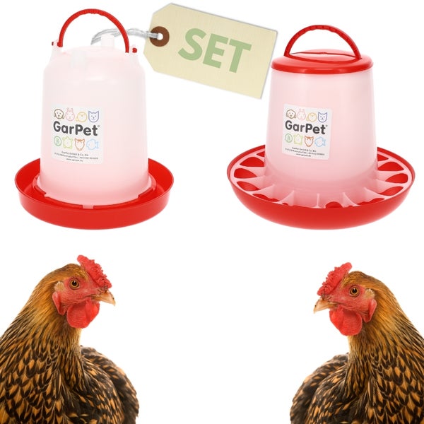 Zusätzlich kann das Set als Hühnertränke outdoor genutzt werden und lässt sich flexibel aufstellen oder aufhängen. Als praktisches Hühnerstall Zubehör ergänzt es Deine Ausstattung sinnvoll.