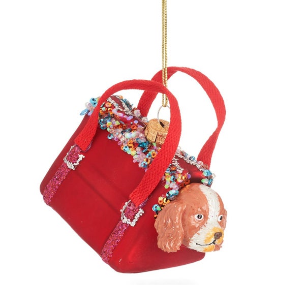 Wenn Sie auf der Suche nach einer niedlichen Dekoration für Ihren Weihnachtsbaum sind, dann ist diese Hund in Handtasche Weihnachtskugel von Sass & Belle genau das Richtige für Sie!